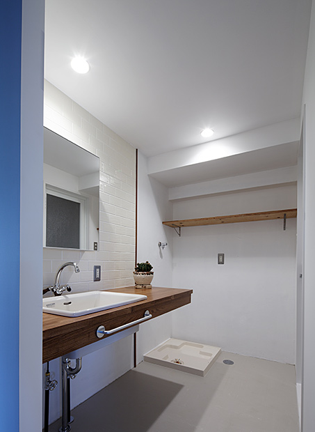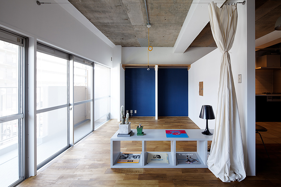 既存の間取りは、少々手狭に区切られた3LDK。購入しやすいマンションとして、最も多いと思われる面積約65㎡となる物件。広めに空間を確保する為に1LDK+フリースペース(1室)をプランしました。フリースペースは書斎として使ったり、将来的に子供部屋にするなどの使い方が可能です。今回もスケルトンから新たに配管なども見直し、キッチンやバスなどの入れ替えを行いました。従来あるマンションの間取りから連想する生活風景とは異なる開放感のある新しいスタイルの提案です。