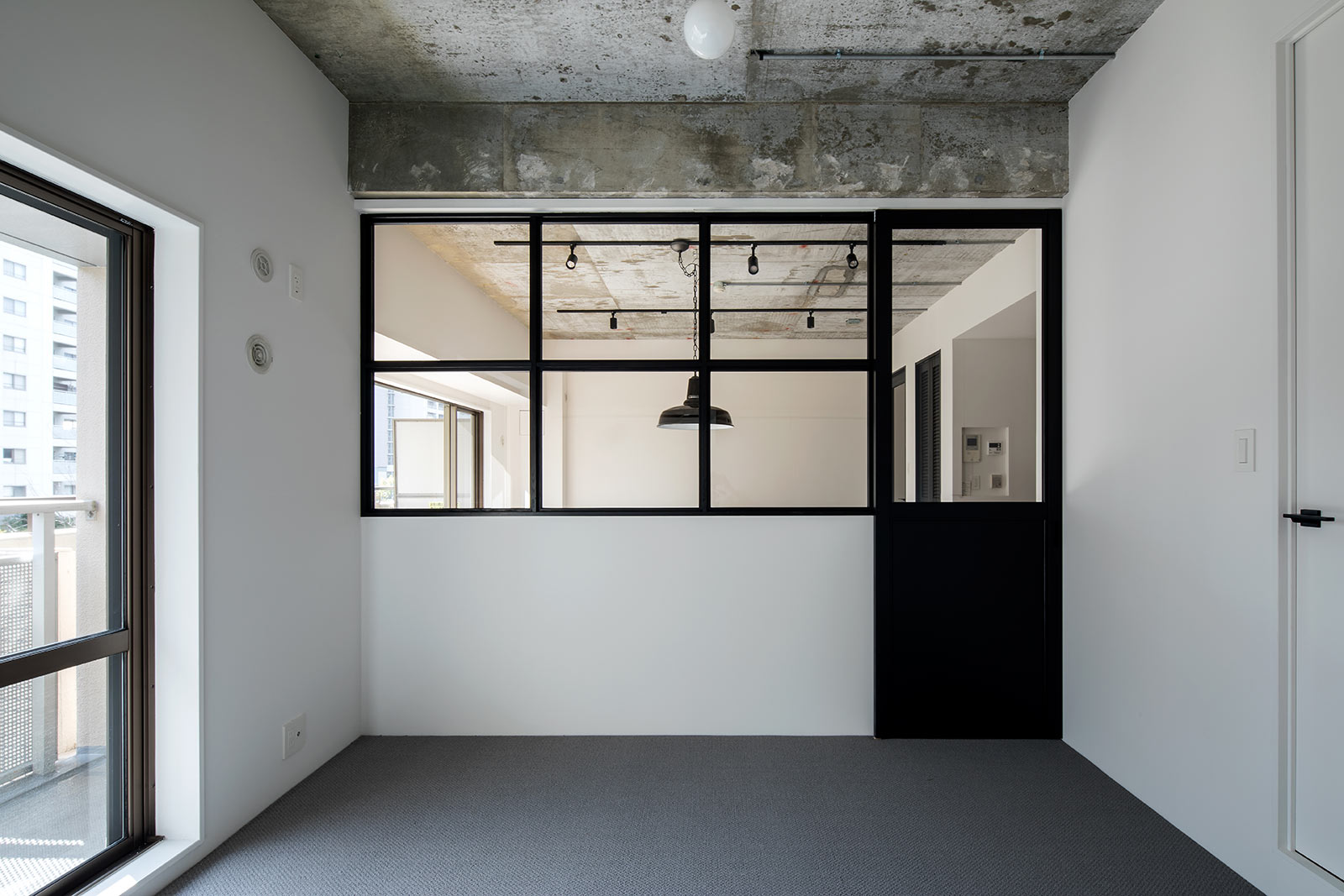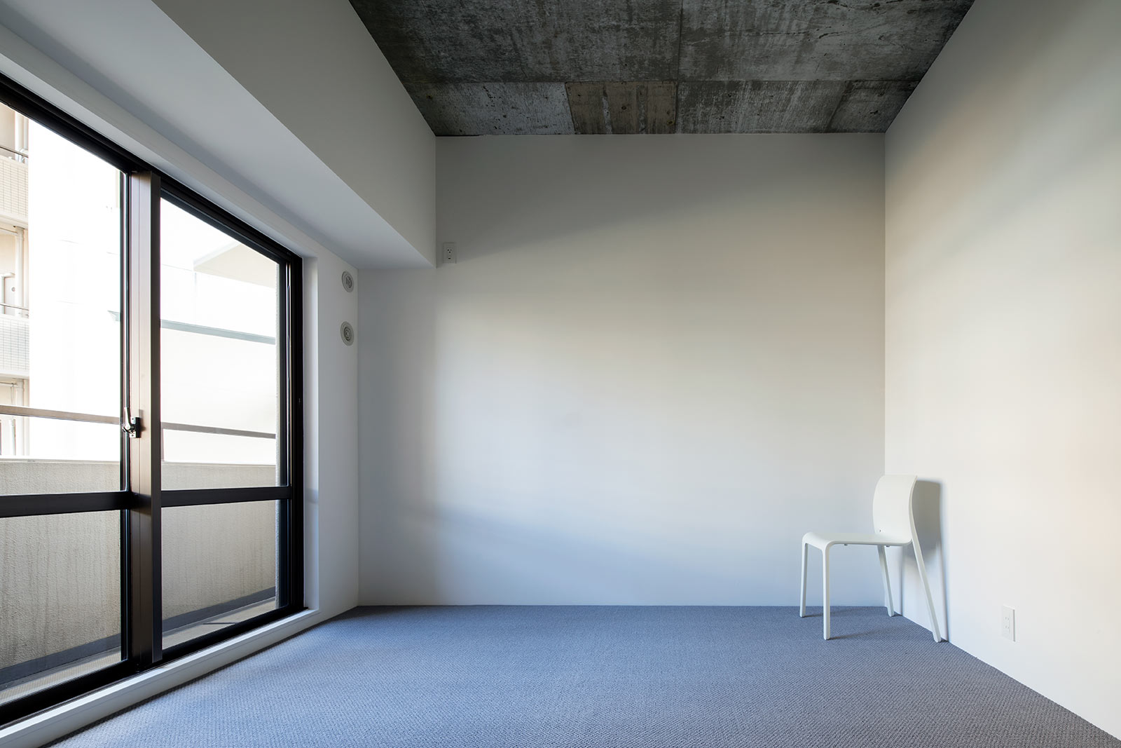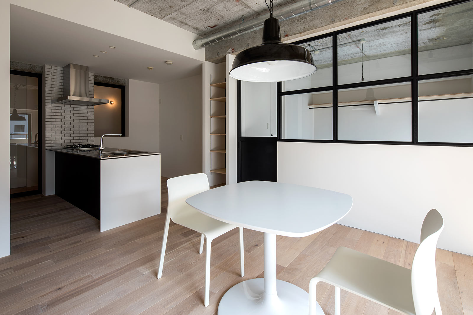 リノベーションプランは両面バルコニーを活かし、広めの個室を確保しながら、回遊導線を取り入れてオープンな空間づくりで圧迫感を無くして、より広い印象に。また要望の多い収納に便利なWICや住居、リビングの中央にキッチンを設けて、住む人の家族構成や暮らしぶりに合わせて、自由なレイアウトができるように計画しています。朝陽が明るい東向きバルコニーにリビング、集合住宅の中庭がある対面の西側バルコニーが各個室となります。